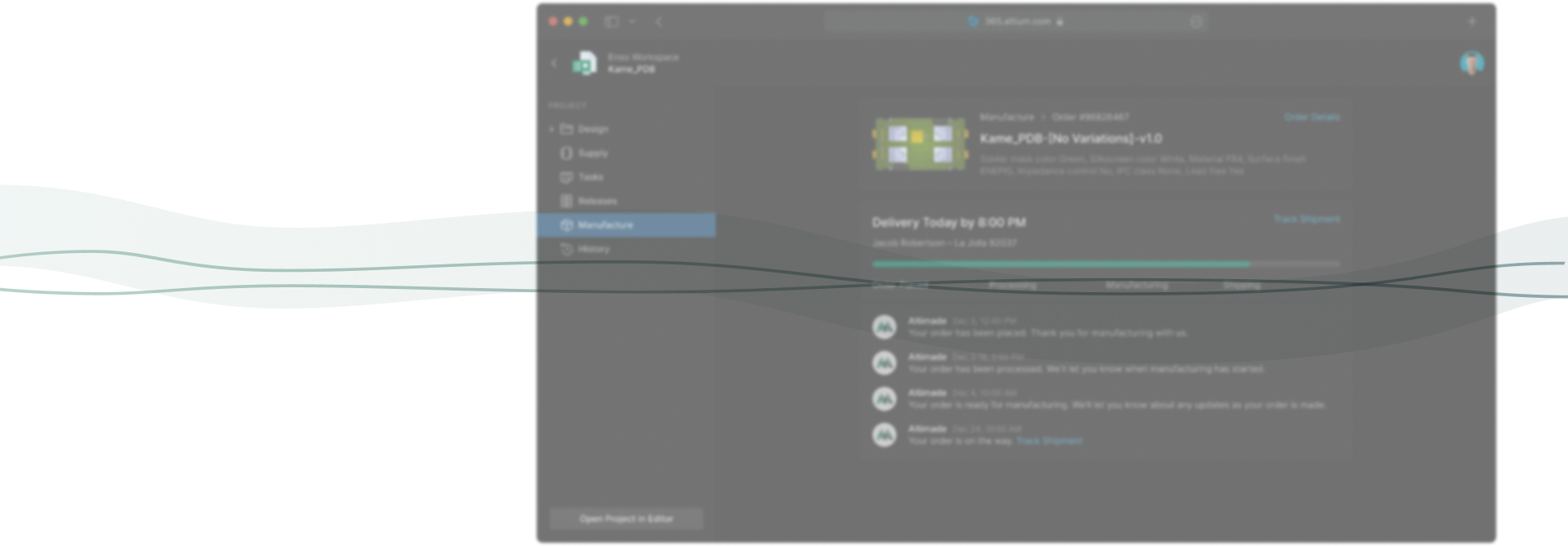Track your project’s progress in real-time and communicate with manufacturing from start to finish in Altium Designer and Altium 365.