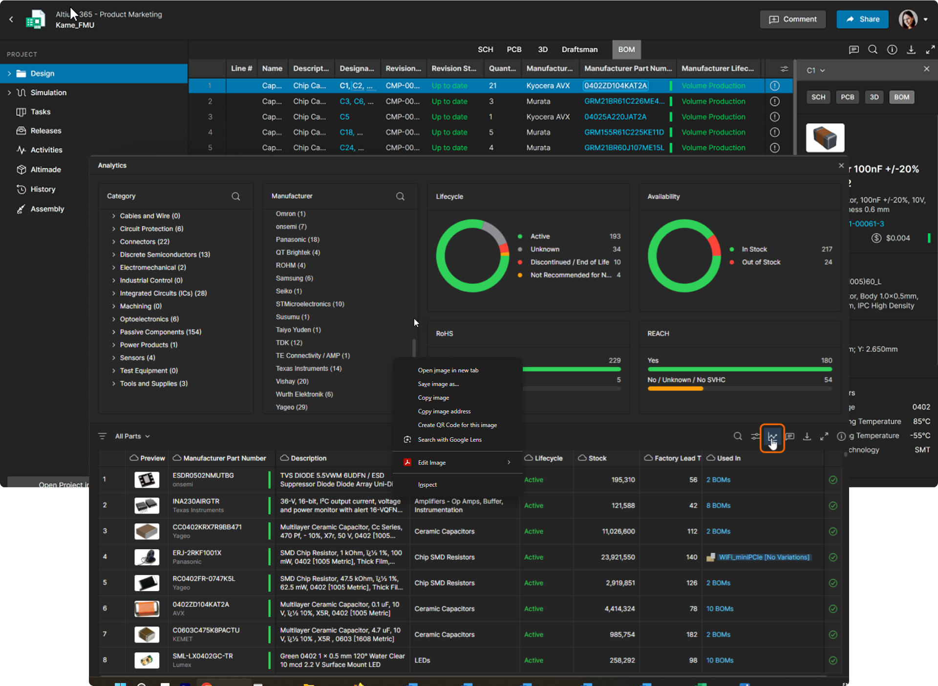 Turn any design into a managed BOM with real-time pricing, stock levels, lifecycle insights, and alternatives. Shared visibility into part availability helps teams secure components well in advance of manufacturing.