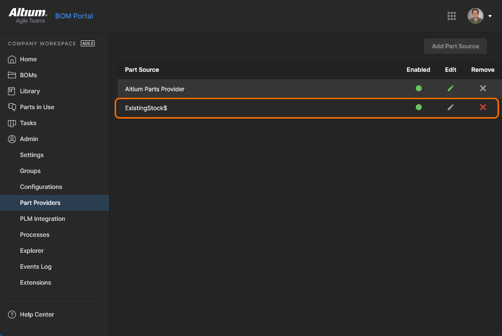 • 供应商数据源可在 Workspace Part Providers 下的 Altium Parts Provider 条目中启用(仅管理员可用)。