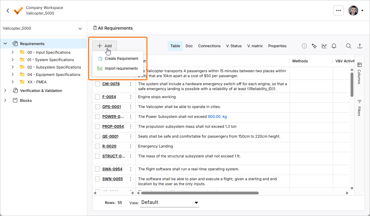 需求工程通常从在 PDF、Excel 表格等文档中起草干系人需求开始,而这些数据往往结构化程度不高。手动从这些非结构化文档中提取需求数据可能费时费力且容易出错。为加快在 Requirements Portal 中捕获需求的过程,你可以利用 AI 能力,通过新的 AI-assisted Importer 从非结构化的 PDF、Excel、Word 和 CSV 文件中导入需求。