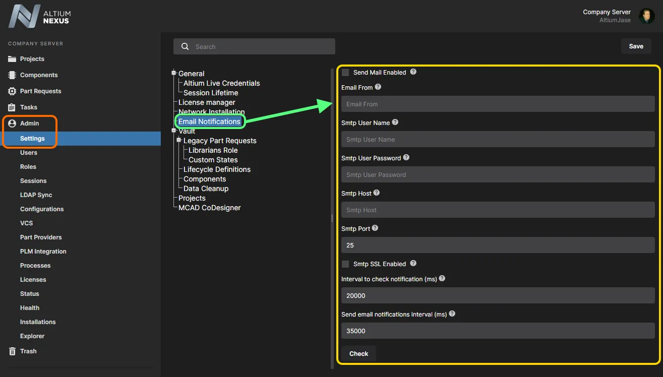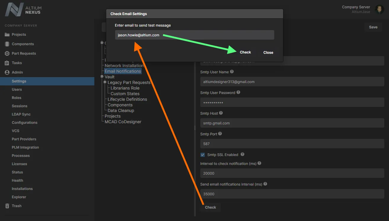 Altium NEXUS Server 提供配置电子邮件通知的能力,可将 NEXUS Server 中发生的各类事件标记并通知关键相关人员。