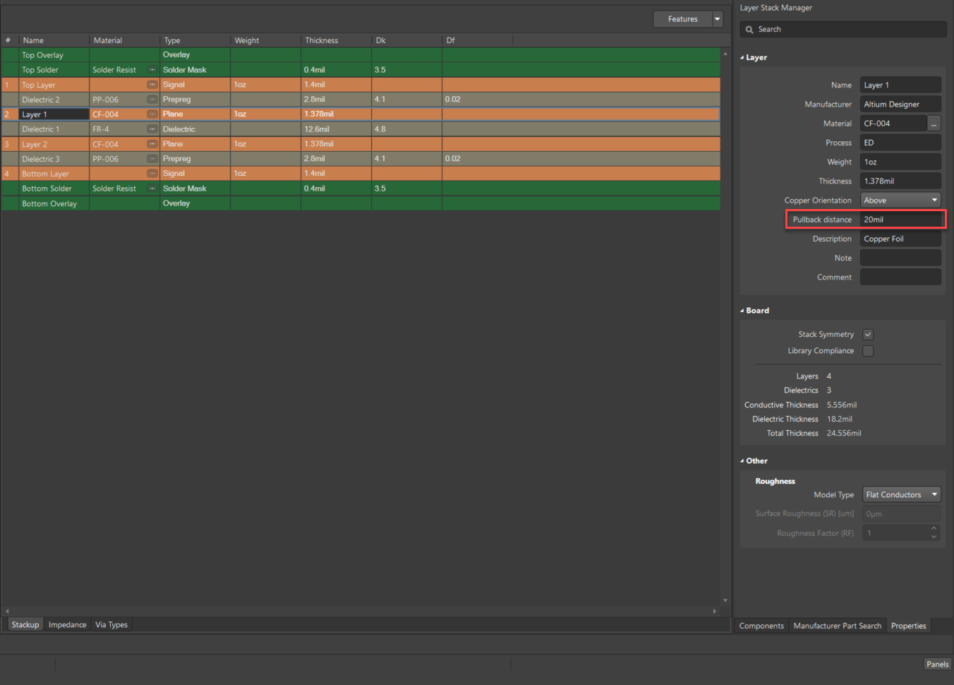 在Layer Stack Manager中找到Pullback Distance。