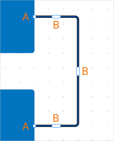 When a placed connection line is selected, the following editing handles are available.