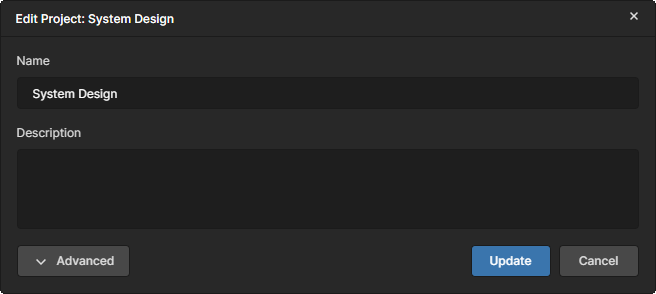 Settings – use this command to access the Edit Project window that provides the controls to change the ESD document's Name and Description (