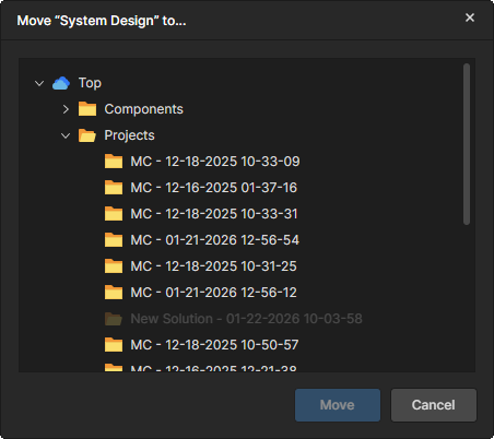 ). Use the window to choose the new parent folder. Click the