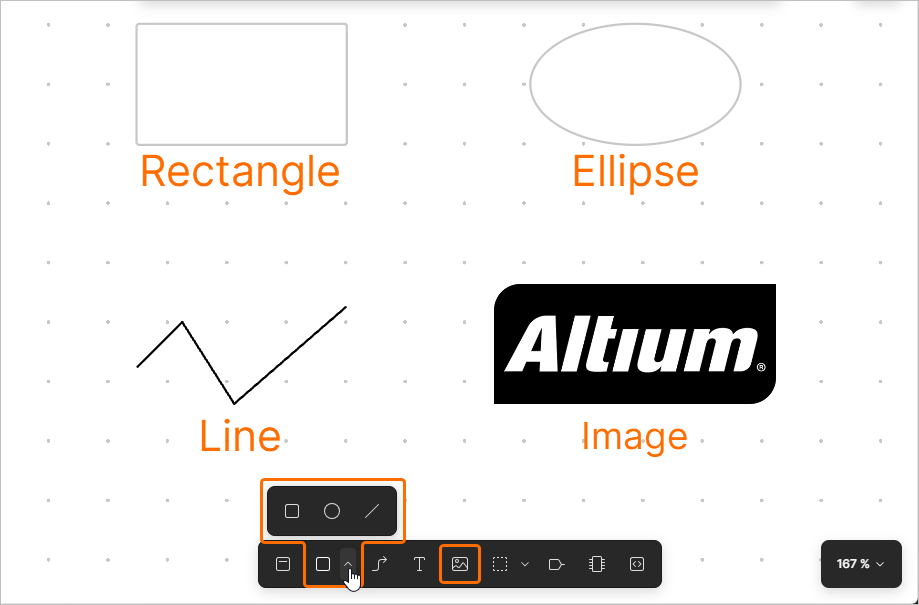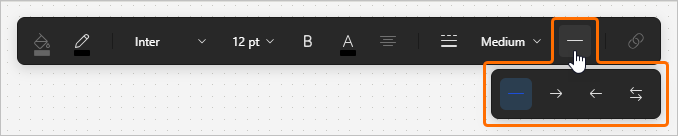 Line – use these controls to configure the line style and line weight of the selected object(s). This applied to line-type objects (connection line and polyline) and the outline of other objects.