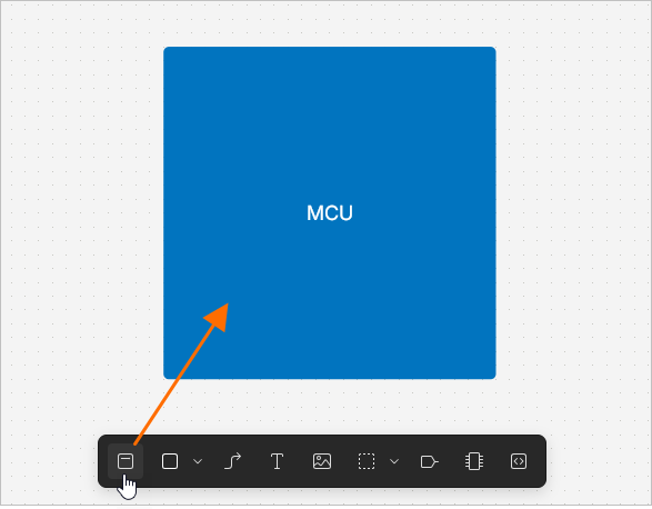 button in the bottom toolbar. Click in the design space to anchor the first corner of the functional block's rectangle, then move the cursor to adjust the size of the rectangle and click again to complete placement. To change the name of a functional block, double-click the functional block, type the required name and press Enter or click outside the functional block.