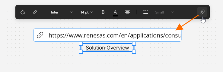 The added link can be accessed by hovering the cursor over the text object and then clicking the link in the pop-up that appears.