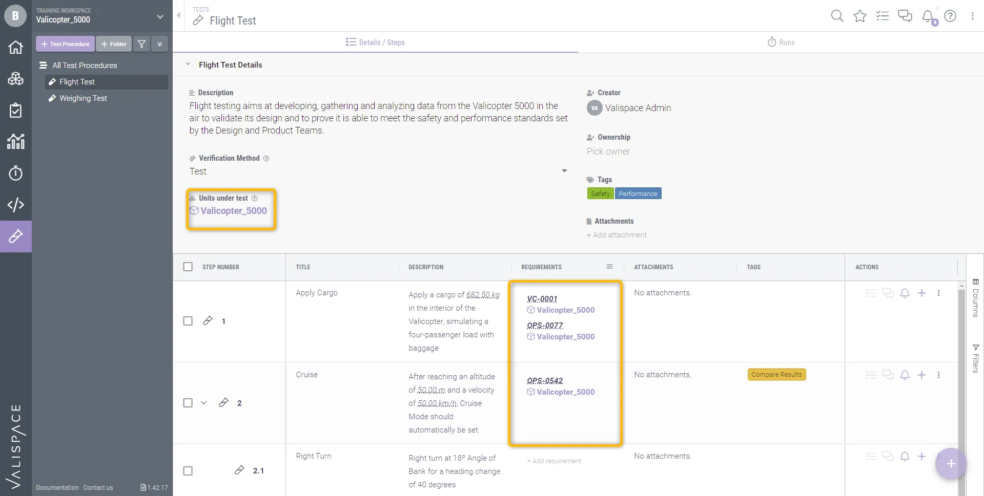 We know how important it is to maintain the traceability between tests and requirements, which is why Valispace allows you to directly connect your Requirements from the Requirements Module with the respective test or test step. There are two different ways in which you can materialize such a connection: