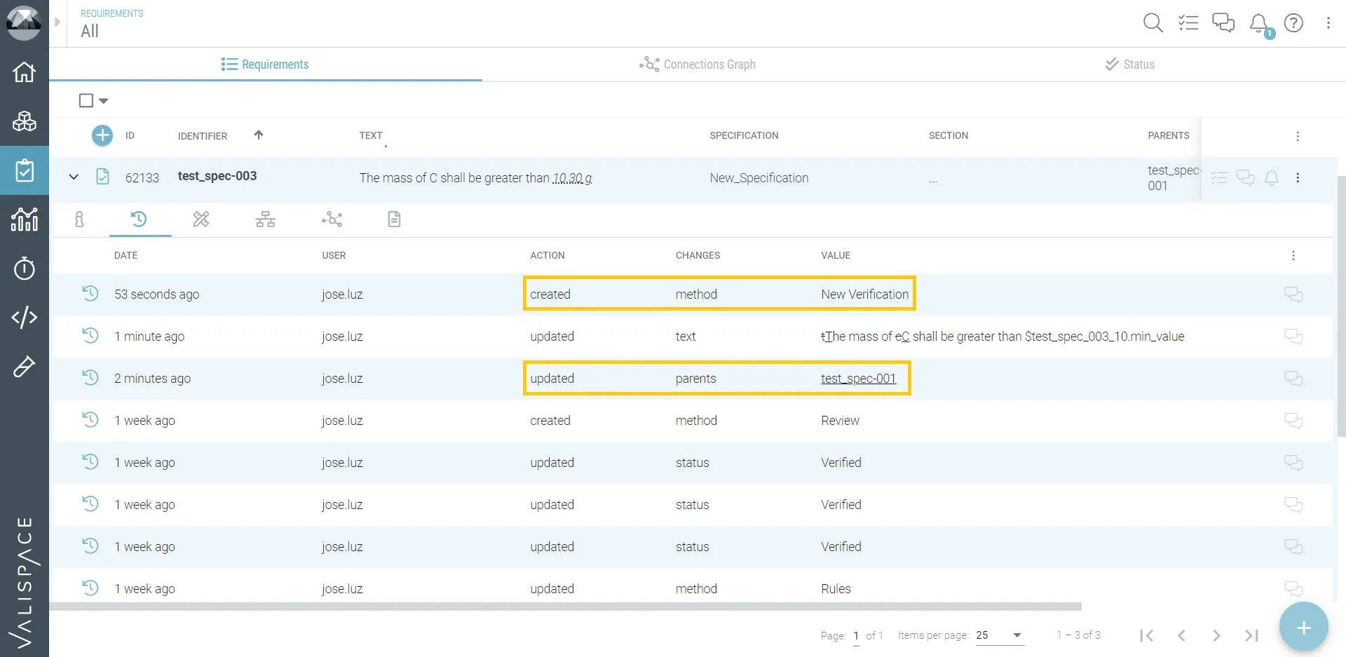 Requirements' History used to track only changes to the Text and Identifier fields. Now, it also tracks Parent and Children relationships (add/remove), Verification comments and changes to Verification Methods.