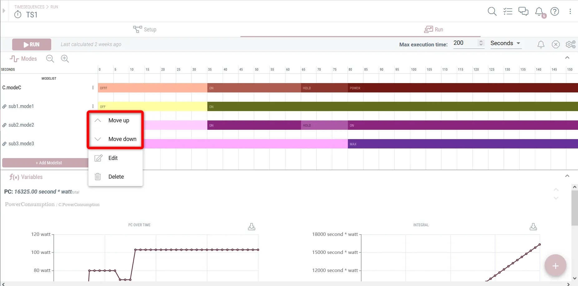 Valispace now allows you to change the order of Modelists in Time Sequences by new options 'Move up' and 'Move down'.