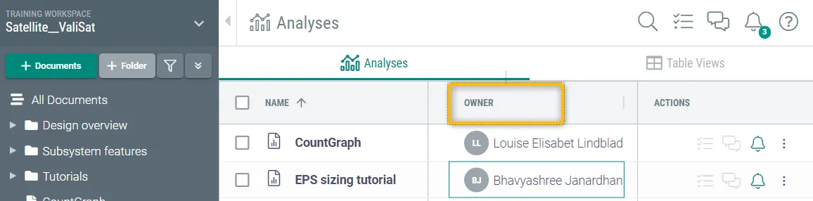 Now Valispace gives an option for the user to add and update the document owner for every document in the Analyses module.