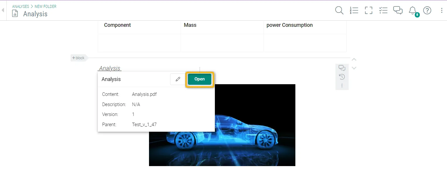 Now Valispace gives an option to open the files attached in the analysis document directly.