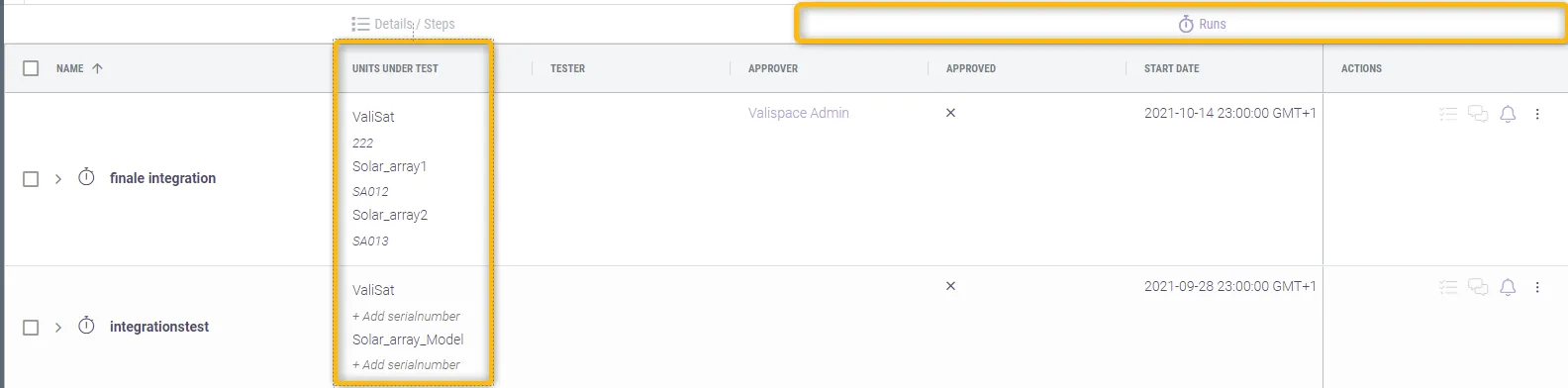 The latest version of Valispace provides a possibility to put serial numbers to Units under test in test runs.