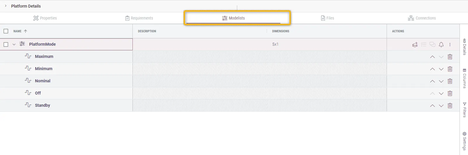 The detail view of the modes table can now be viewed and edited in the dropdown arrow of the modelist: