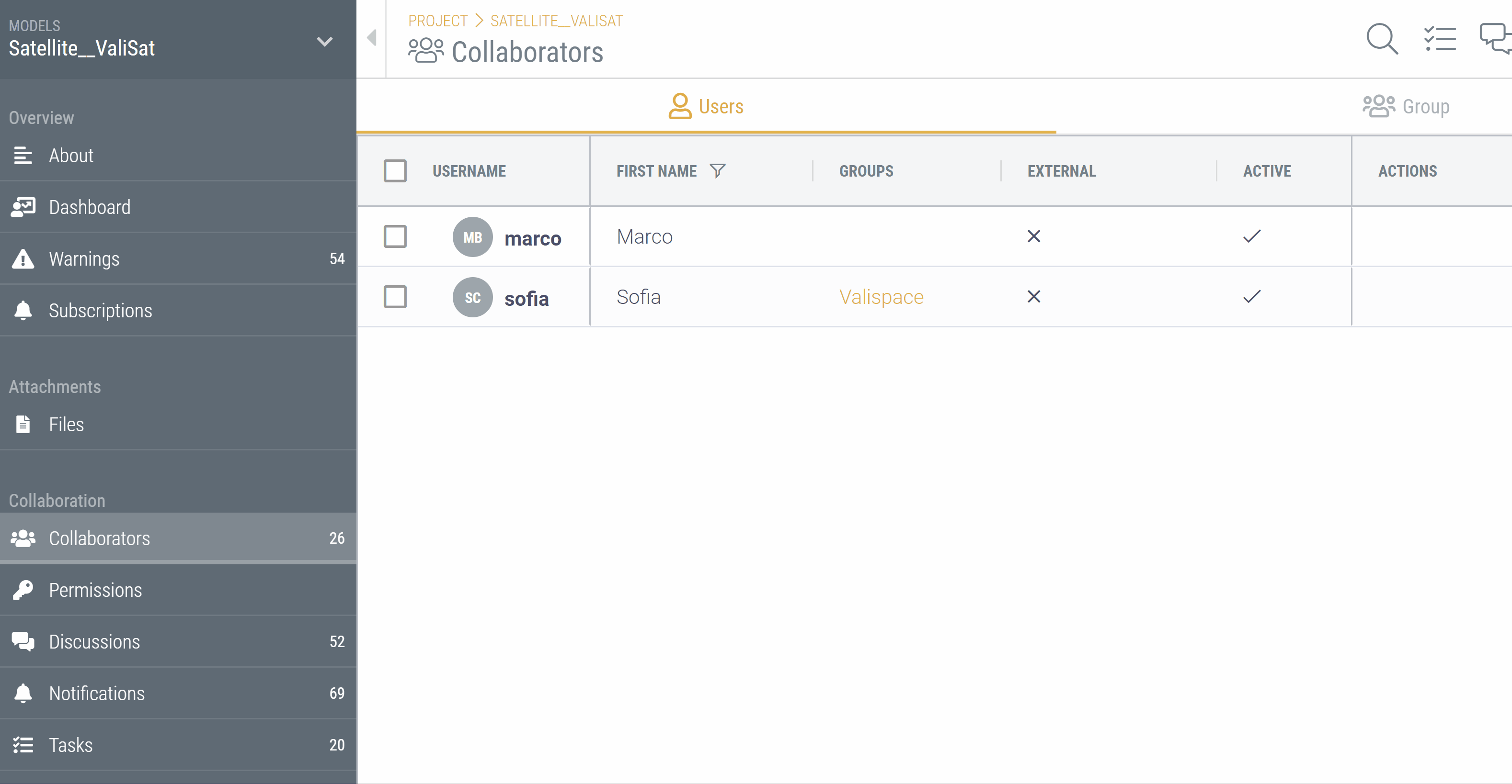 From this version forward, the Permissions and Collaborators Page are not visible for users marked as external. To mark a user as external in the Collaborators Page, make the External column visible and mark the field as True.