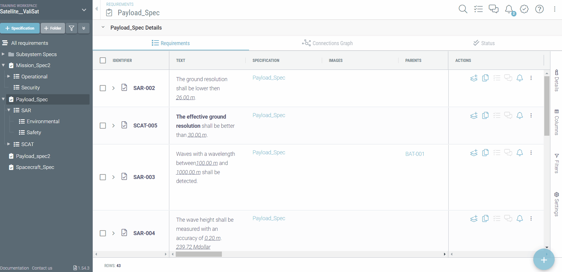 The 1.54.3 version of Valispace software resolves various bugs and provides some improvements. The notable ones are listed below: