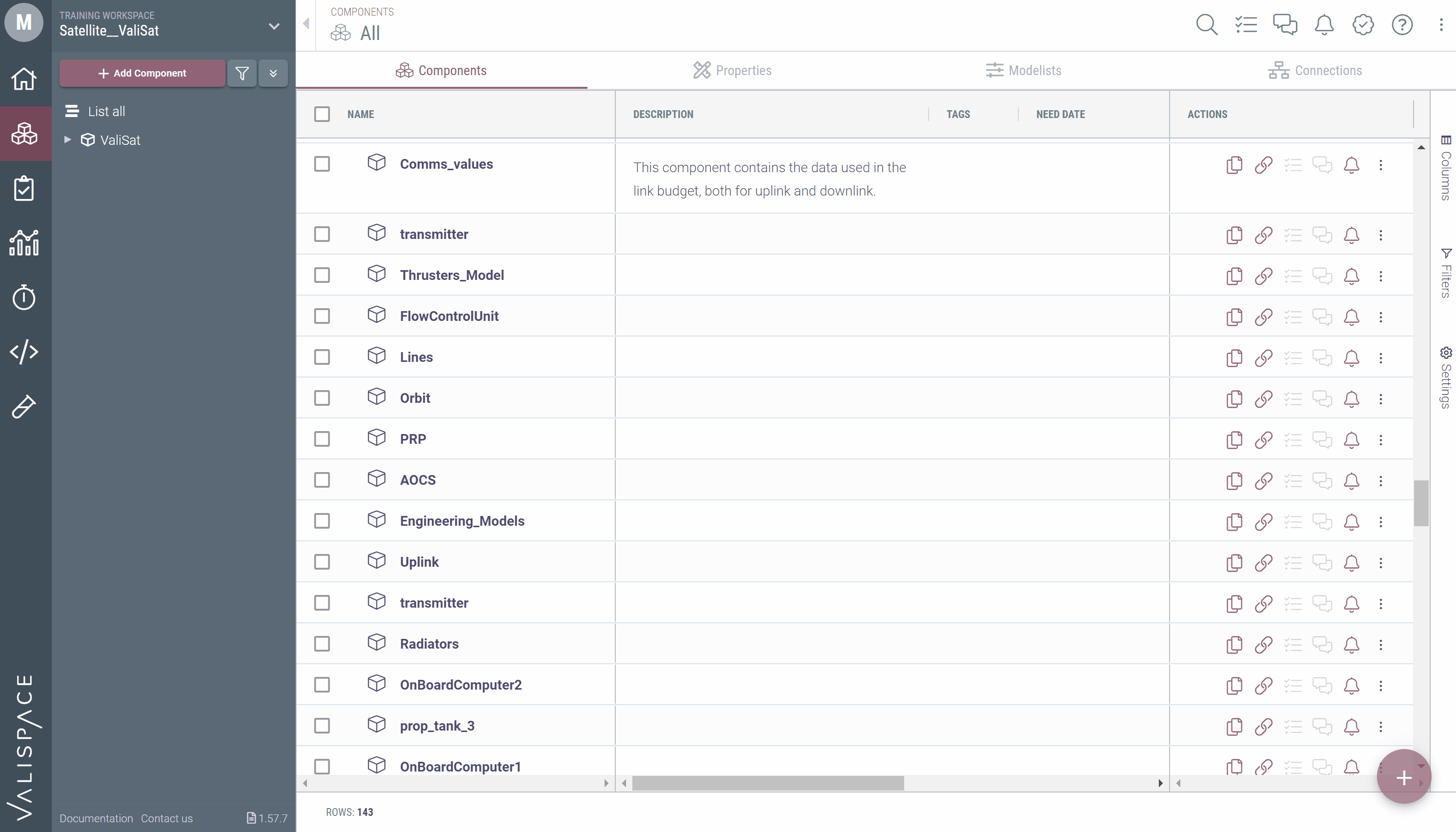 In the Components Module, Valispace now allows you to connect components or properties to tasks. The Valis/components/requirements can be added as “input to”, “output to”, or “related to” fields in the tasks through the newly added option “Add as task connections”. Once the connections are done, they can be accessed by clicking on the tasks icon in the component’s row.