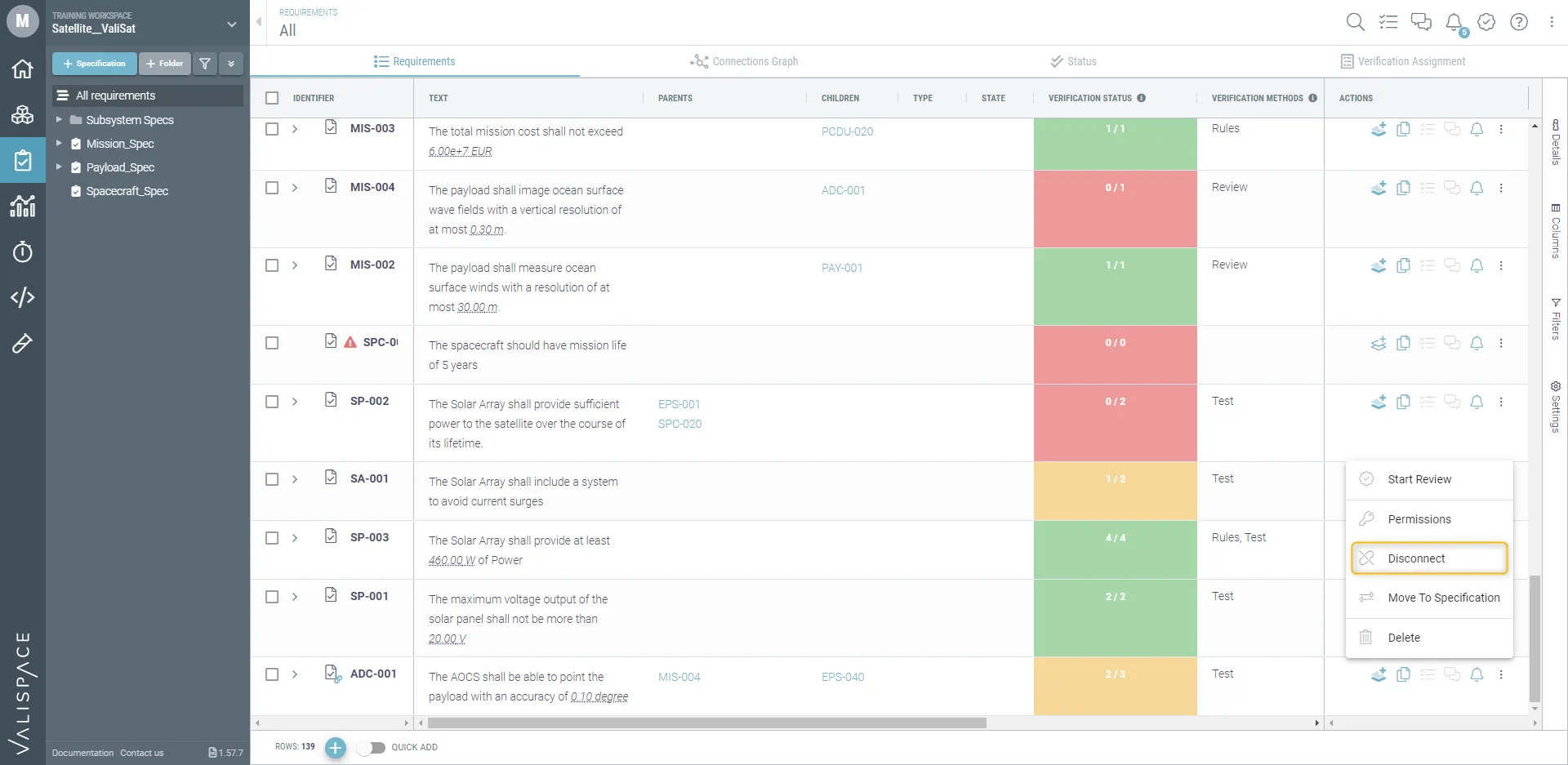 An improvement was made in the Master-Follower copy feature. Rather than discarding a connection completely and losing its link to the master, the user can now select the disconnect option. It will disconnect the follower from its master but will allow the user to reconnect it later if needed. This option can be found by clicking on the three dots in the requirement’s row.