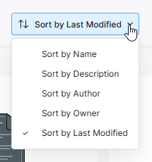 In the list view, the project listing can be sorted by Name, Description, Author, Owner, or Last Modified, using the column header in each case. Click once to sort in ascending order and click again to sort in descending order. The arrows to the right of the column name will indicate the currently active sort direction. The chosen sorting method in one view is applied to both views.