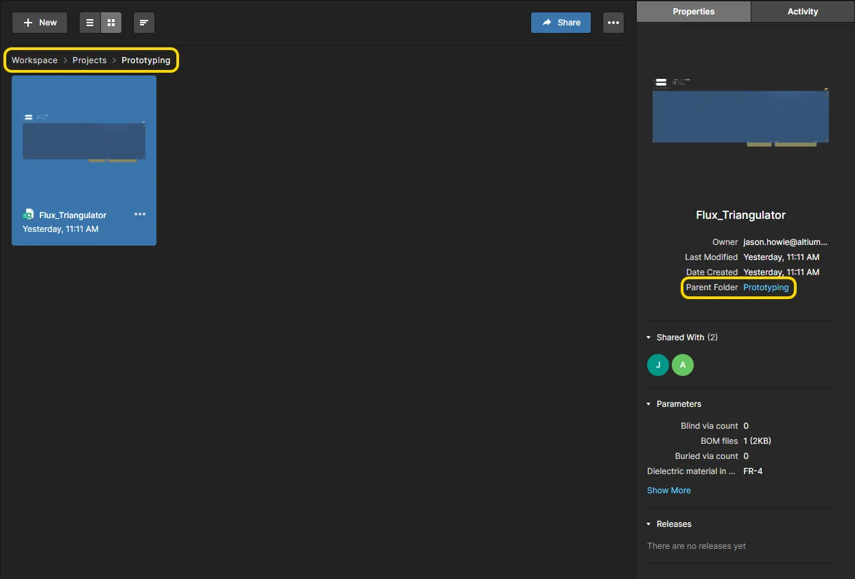 When it comes to sharing a Multi-board project the same considerations apply. Both the parent Multi-board project and its associated sub-projects should be shared with the same View/Edit permissions to the same Workspace members. Users who then open the Multi-board project for the first time in their design client must also open the associated sub-projects – again ensuring that the relative folder structure is locally correct.