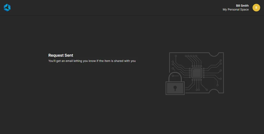 Alternatively, if the user who opens the provided link does not have access to the project – it is not shared with them – their Personal Space will offer a way to submit a request for access – see below.