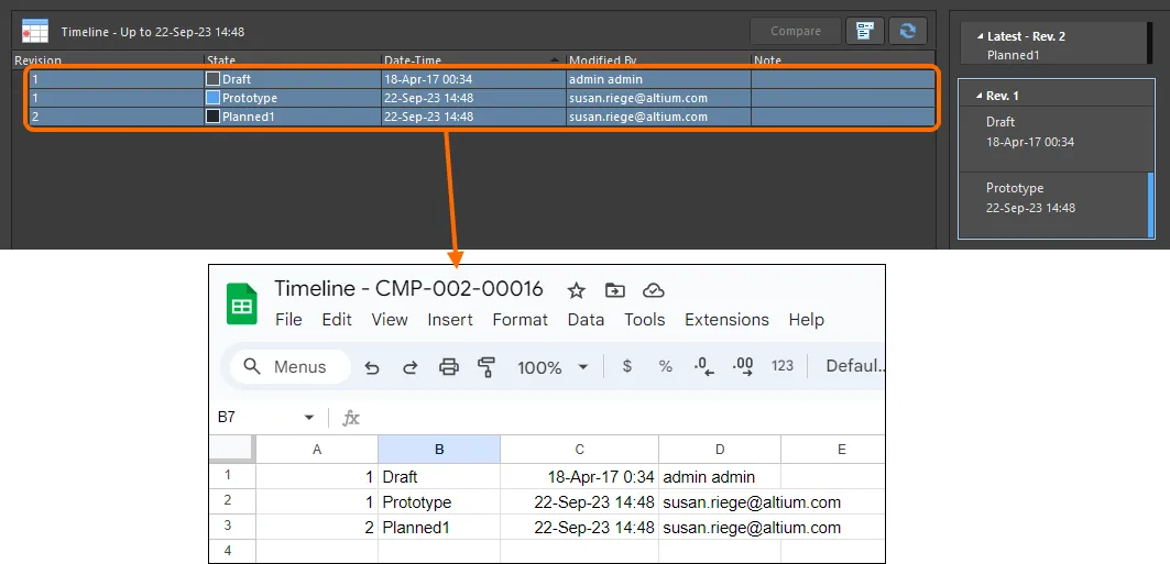 Management of the revisions of an Item, and the lifecycle states of those revisions, can be performed from the following two places within Altium Designer: