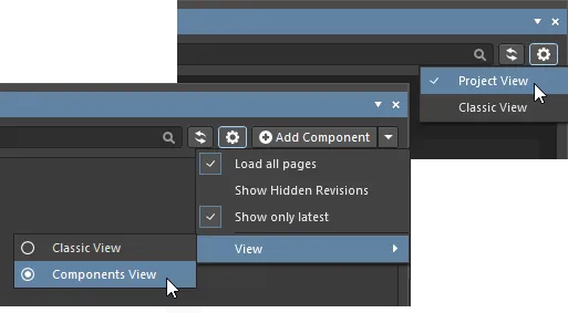 • View – select whether you'd like to view the items in Classic View or interpreted view (Components View/Project View).