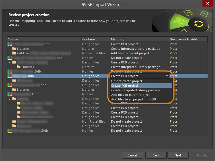 Create one Altium Designer project for each DDB Folder – select if your DDB contains more than one board design.