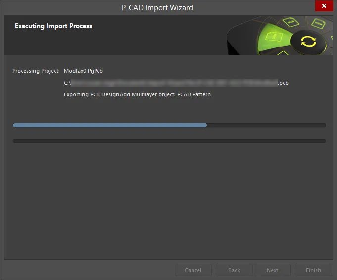 The P-CAD Import Wizard has completed. Click Finish to close the Wizard.