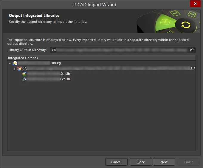 The output directory for the imported libraries is shown on this page of the Wizard. Use the Browse Folder icon to search for and choose the desired directory.