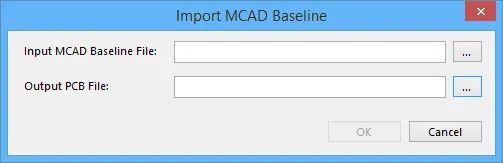 If the baseline file has been created on the MCAD side, it can be imported into Altium Designer using the File » Import MCAD IDX Baseline command. The Import MCAD Baseline dialog will appear. Use this to browse to, and specify the MCAD Baseline file (MCAD Baseline.idx), and the PCB document into which proposed changes are to be synchronized.