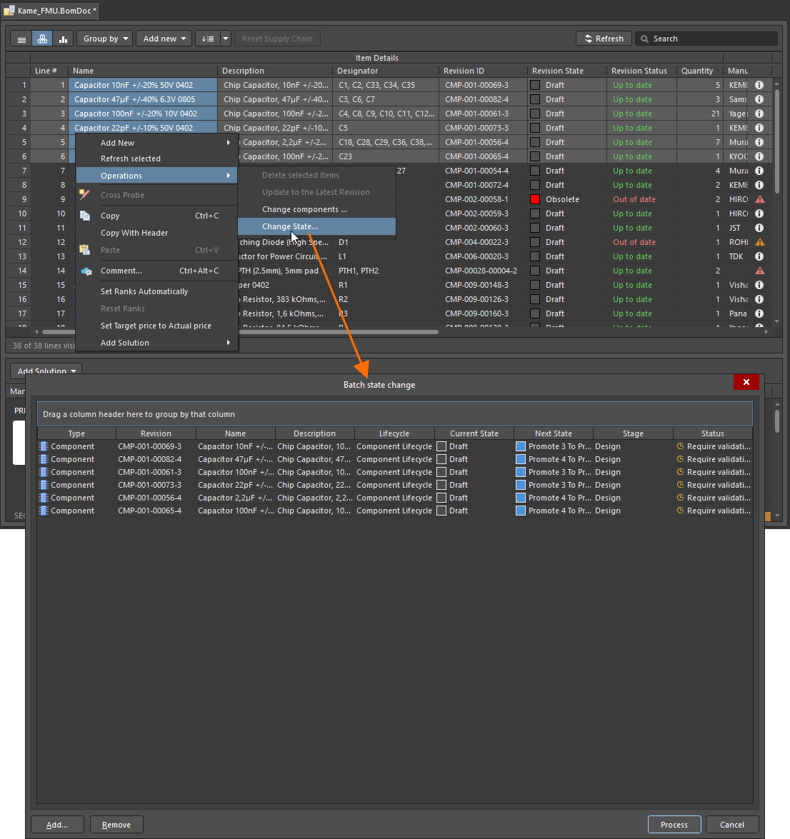 Note that for an object mentioned above to be included in the update, a component assigned to the object must include a link to a schematic symbol.