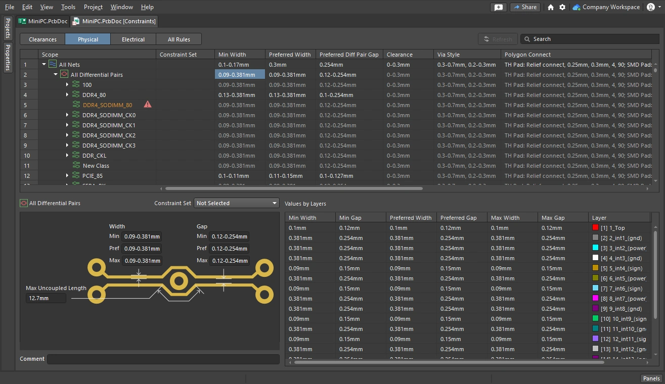 The Constraint Manager is a document-based, spreadsheet-like user interface that allows you to view, create, and manage the design constraints used for your PCB designs.