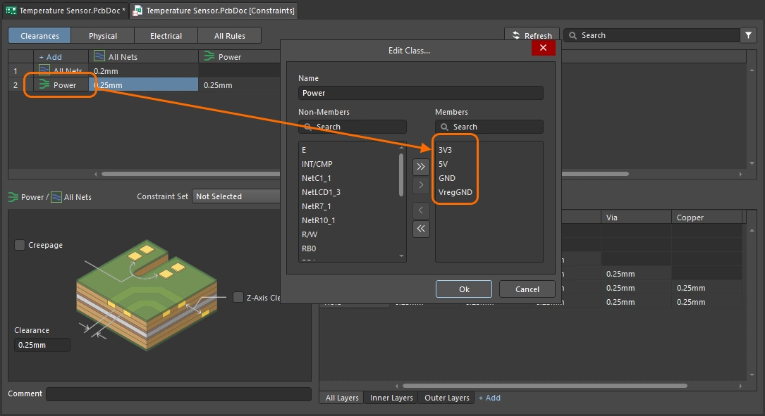 | Configure the copper layers |