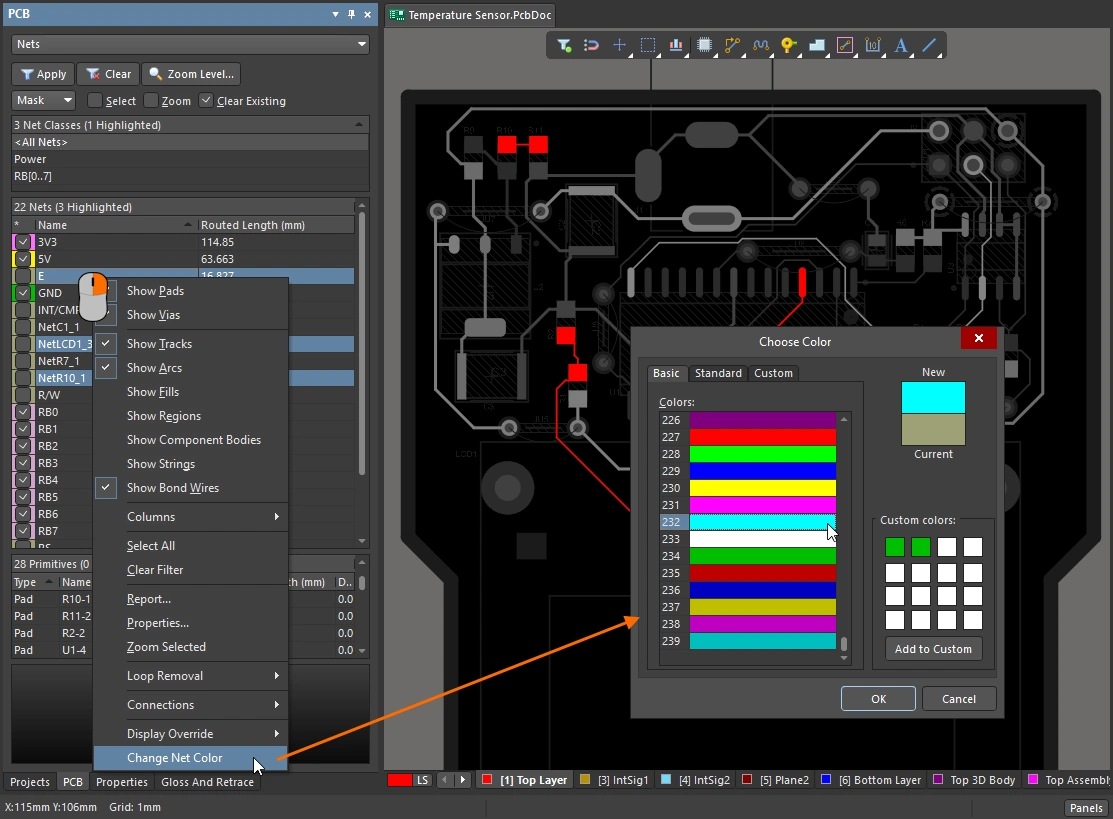 | Apply color in the PCB editor |