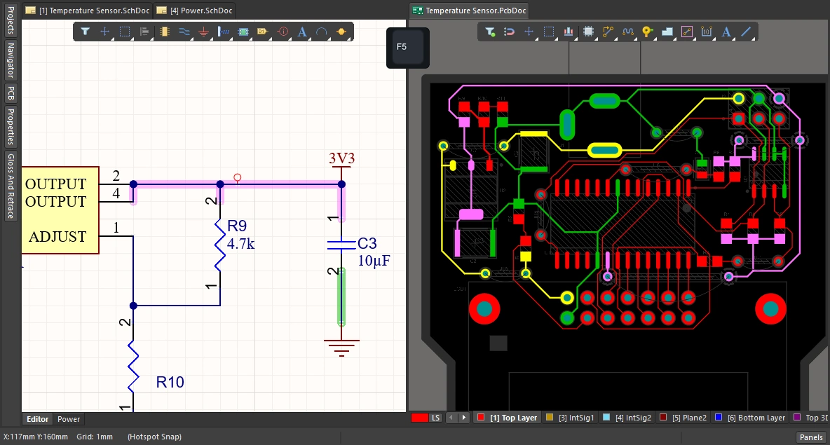 Net color override can also be toggled on ( ) and off ( ) in both the schematic editor and the PCB editor, by pressing the F5 shortcut. |