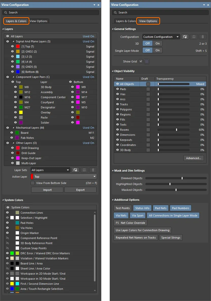 Learn more about configuring the display of layers in the View Configuration panel.