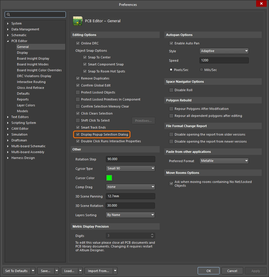 • The second and subsequent clicks will select the next object in the selection order used when there are overlapping objects: for example, component, polygon, via union (if those objects are under the cursor).