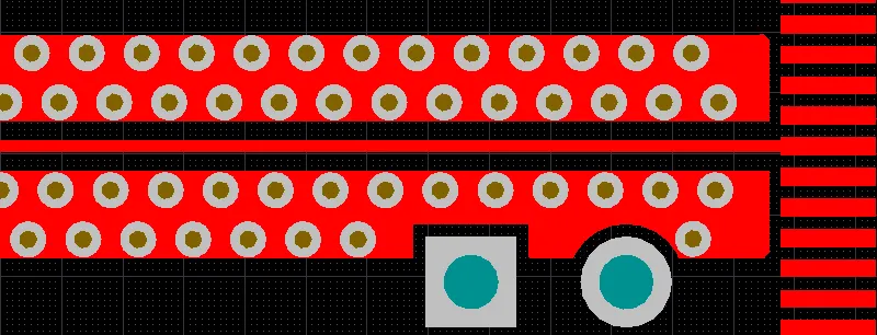 As well as adding shielding vias along each side of the routing, you can also include shielding copper, as shown in the images below. To do this, enable the Add shielding copper option in the Via Shielding dialog. This copper is created as a polygon, so it obeys the applicable Clearance and Polygon Connect Style design rules.