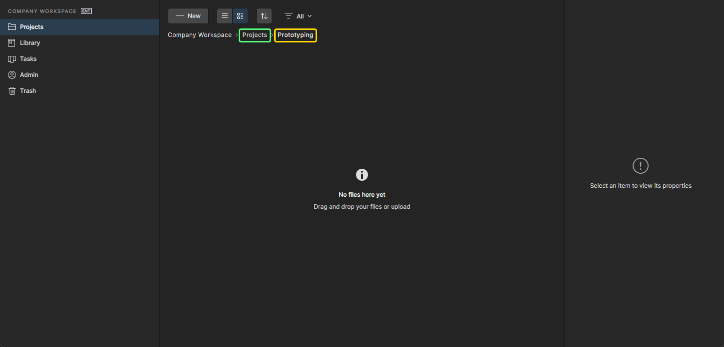 You can also quickly jump back to the top-level Projects folder by clicking the Projects entry within the left-hand navigation tree.