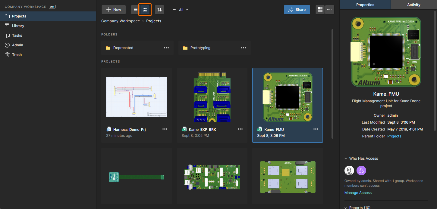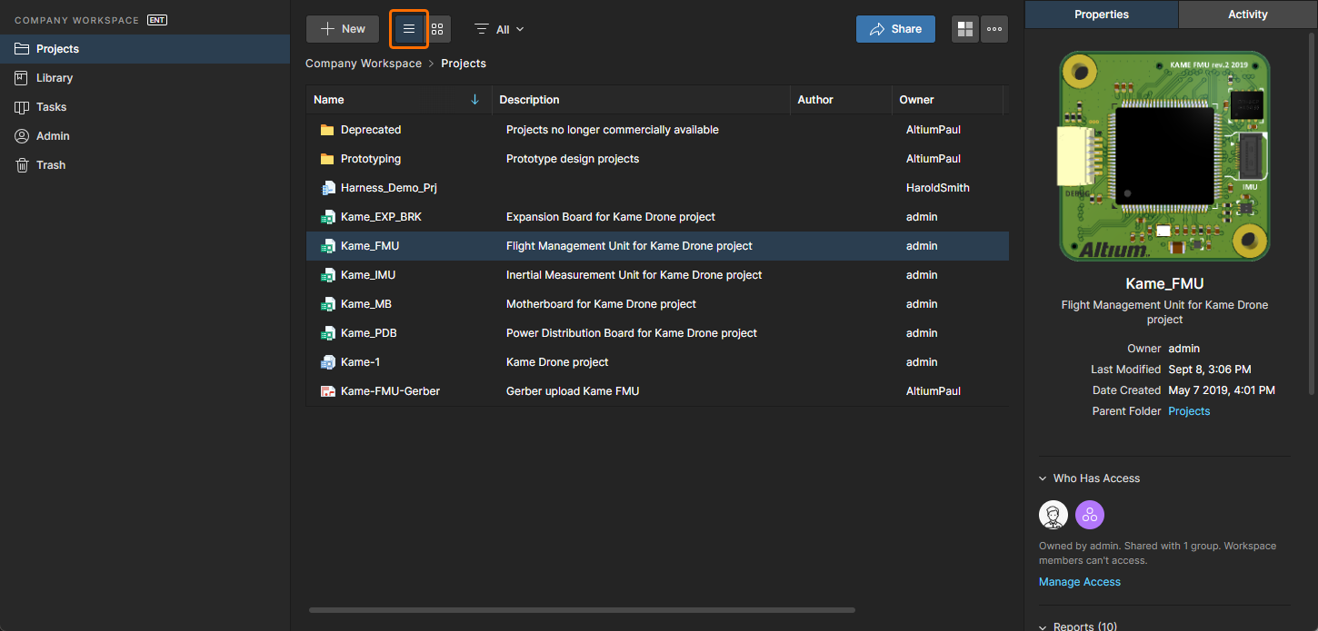 This document takes a look at working with projects through the Enterprise Server Workspace's browser interface. For information on working with projects in your design software, see Getting Familiar with the Altium Design Environment.
