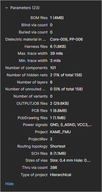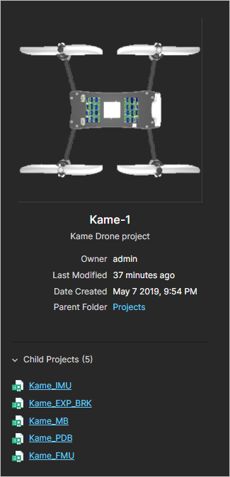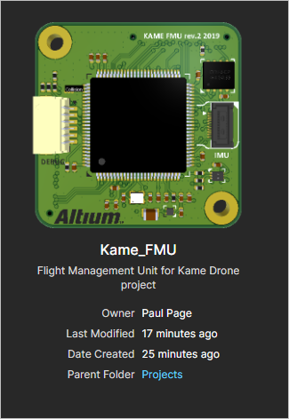 • History – browse a progressive timeline of major events relating to the project, including its creation, commits, releases, and clones. Each time a supported event happens in association with the project, that event is added to the timeline as a dedicated tile with various actions (such as design data comparisons) supported where applicable.