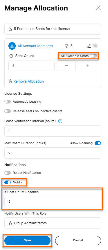 The issue occurs when the All available seats option is enabled in the License Allocation settings. This setting overrides the specific seat count threshold, preventing the system from recognizing when the limit is reached.