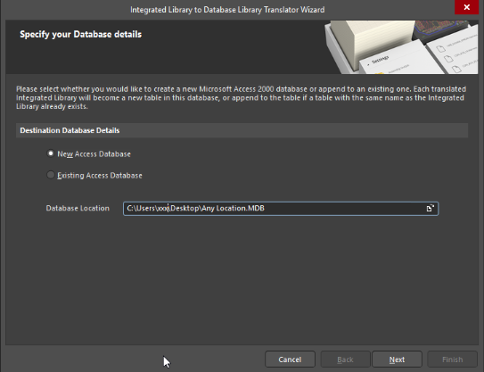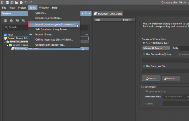 - Import the IntLib into the DbLib and link it to a new Access database.