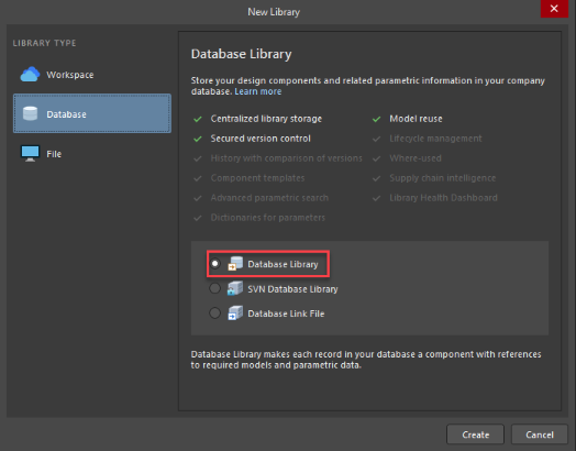 - Go to File » New » Library, select Database, choose Database Library, and click Create.