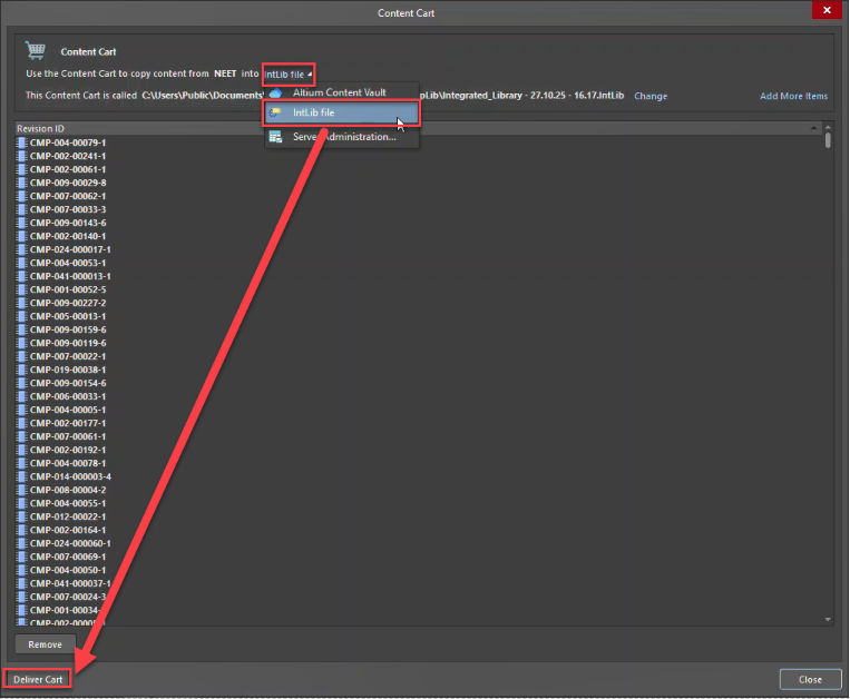 - Select Deliver Cart. This may take up to 30 minutes depending on the number of components.