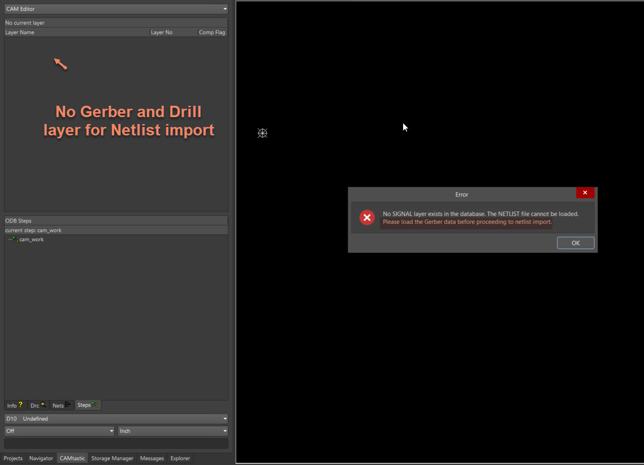 "No SIGNAL layer exists in the database. The NETLIST file cannot be loaded. Please load the Gerber data before proceeding to netlist import."