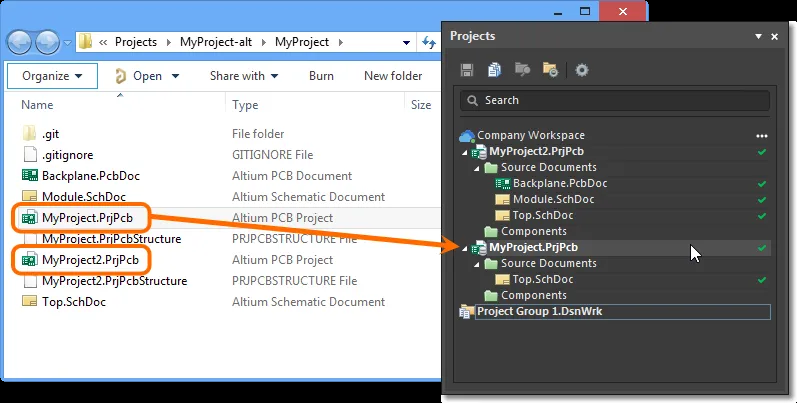 - Locate duplicate *.PrjPcb files under the root or sub-folders of the project directory.