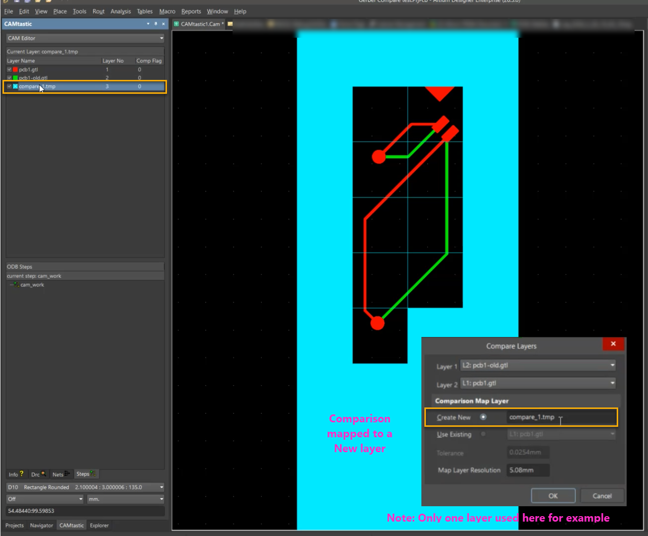 - CAMtastic supports tolerance adjustments and creates a new comparison layer for each comparison.
